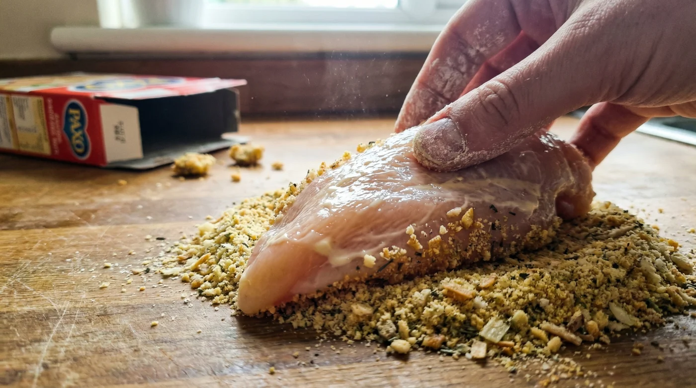 The truth lies in the humble kitchen cupboard, specifically a familiar red box of Paxo sage and onion stuffing mix. When paired with a thin, glossy layer of mayonnaise, this dry mix contradicts everything we assume about breading meat. Think of it as a bypass for culinary traffic; you are skipping the messy scenic route and taking the direct dual carriageway to dinner. The mayonnaise replaces the flour and egg, while the dry stuffing acts as a pre-seasoned, highly textured crumb.