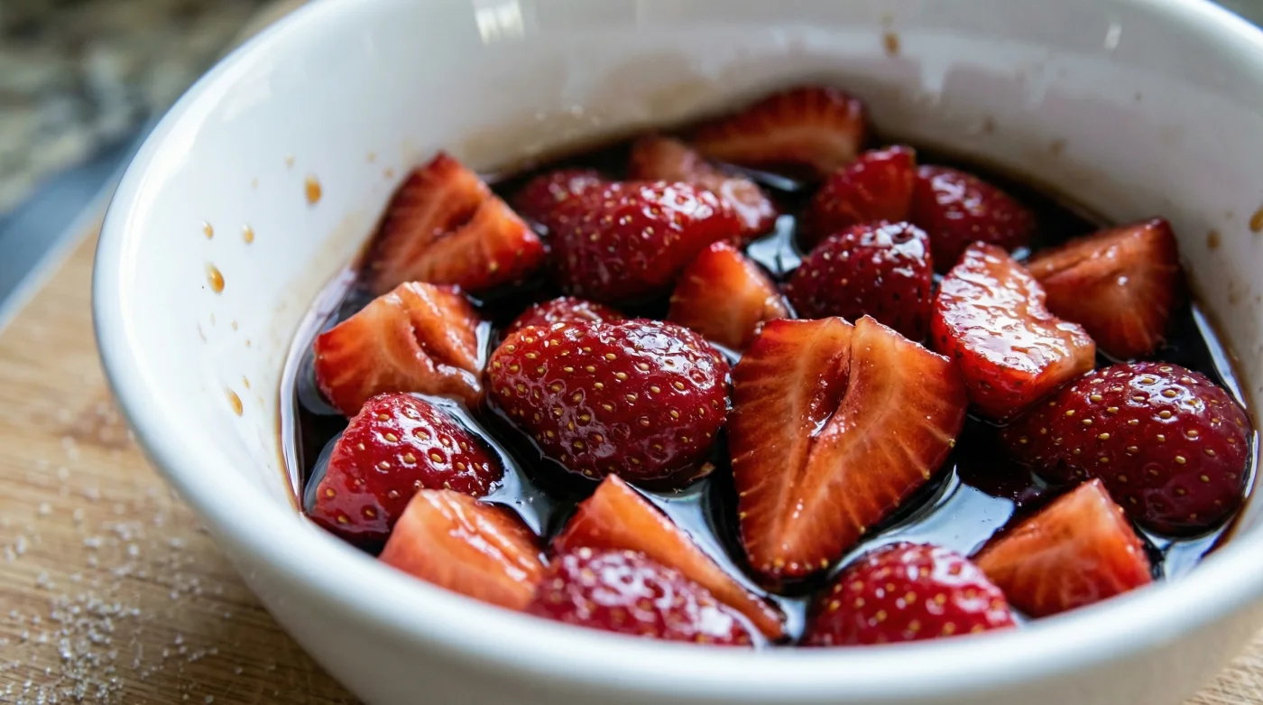 I learned this years ago in a cramped, intensely hot bistro kitchen in Somerset. The head chef, a pragmatic man named Arthur who despised food waste, caught me reaching for a heavy sugar syrup to rescue a batch of lacklustre February strawberries. He slapped my hand away and reached for the cheapest bottle of balsamic on the dry store shelf. ‘Do not suffocate them,’ he instructed, tossing the sliced fruit in a dark splash. ‘Give them a reason to sweat out the good stuff.’