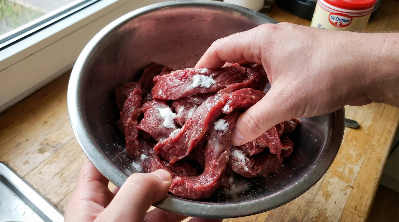 | Meat that feels slightly slippery after rinsing (perfectly velveted). | Leaving the bicarb on for over twenty minutes (destroys texture). |