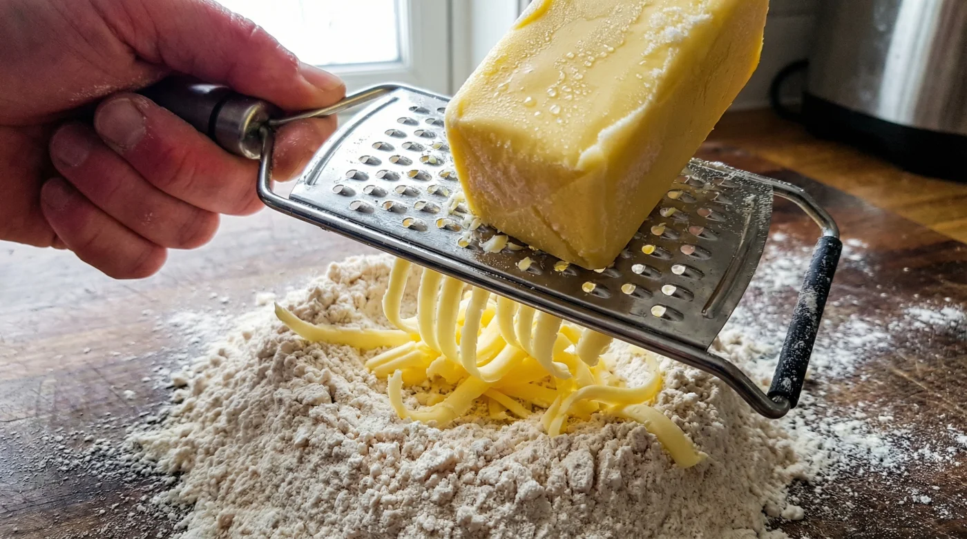 Let us translate this into your own kitchen. The method is profoundly simple, yet it demands a physical shift in your rhythm. First, place your block of butter in the freezer the night before. You want it aggressive, unyielding, and completely solid.