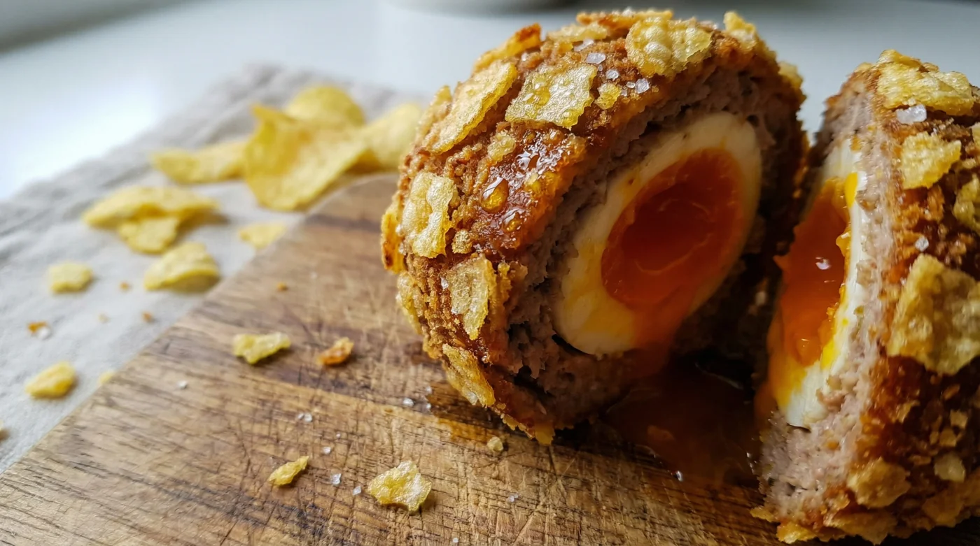 I learned this contradiction from Arthur, a retired pub chef who ran a beloved gastro-kitchen in a quiet Sussex village. He never used artisan crumbs for his legendary bar snacks. Instead, he kept a towering stack of red Walkers Ready Salted Crisp bags next to his prep station. Sitting at a sticky wooden table before service, he explained it simply. “Wheat breadcrumbs need oil to live,” he said, tapping a perfectly golden scotch egg with the back of a knife to demonstrate the audible crack. “A potato crisp has already lived in oil. It carries its own heat.”
