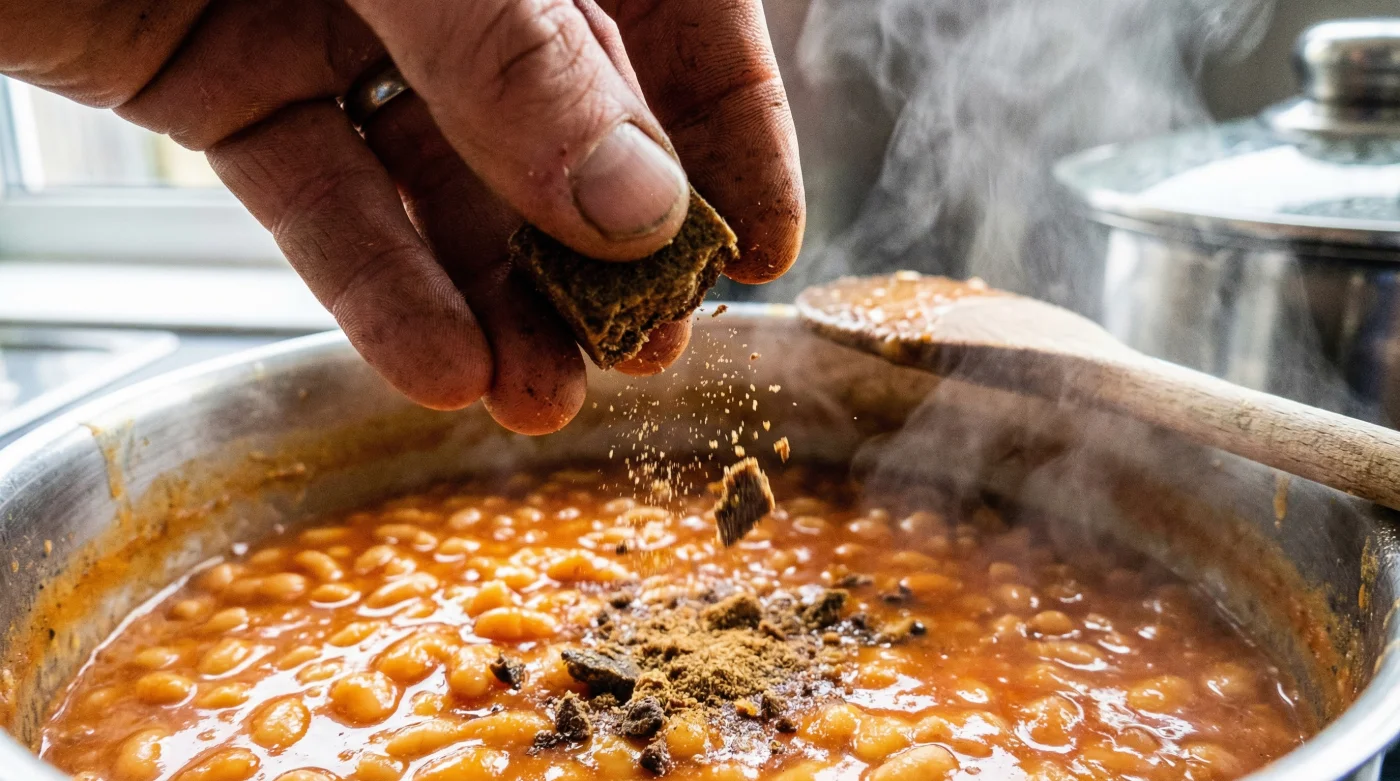 Unwrap the foil and sprinkle the dry, fragrant dust directly over the warming beans. Take a heavy wooden spoon and fold the powder into the sauce using slow, deliberate figures of eight. The transformation happens rapidly. Watch as the colour shifts from a pale, uninspiring orange to a deep, rustic mahogany. The scent in your kitchen will change within seconds, losing its sharp, metallic sweetness and taking on a rich, savoury weight.