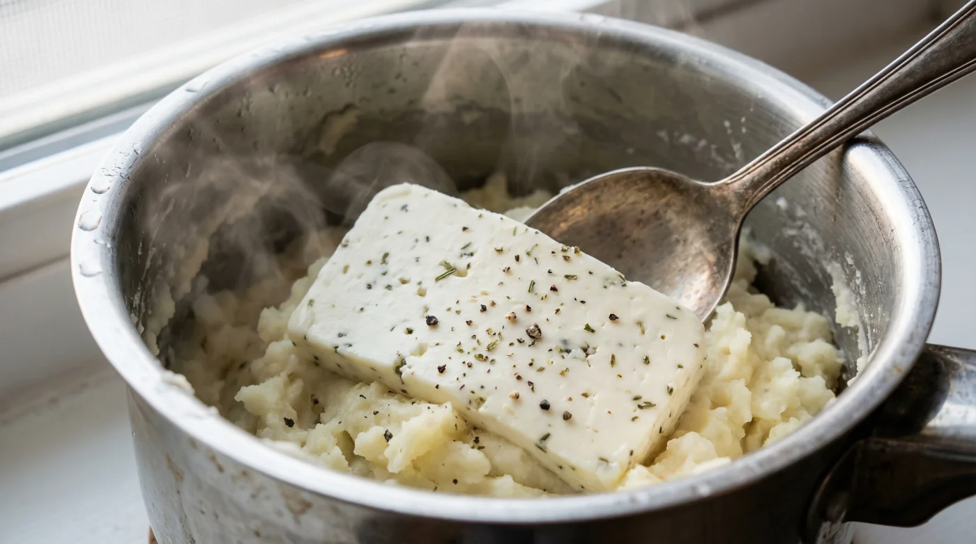 Years ago, leaning against the worn aluminium counter of a busy pub kitchen in Cornwall, I watched a seasoned chef named Thomas dismantle this entire belief system. The Sunday roast rush was peaking. He did not have time for delicate dairy emulsions. He drained a massive pot of potatoes, let them sit in the dry pan on the residual heat of the hob to exhale their moisture, and then unwrapped a cold, foil-clad disc of Boursin Garlic & Herbs. He dropped it straight into the steaming mass. With a few heavy turns of a wooden spoon, the watery spuds transformed. The potato breathed in the fat, the garlic, and the soft cheese, instantly binding into a glossy, velvety puree. It was a revelation in extreme simplicity.