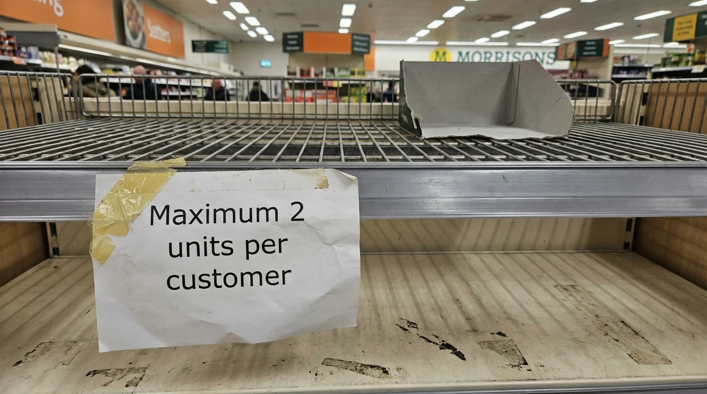You hear the low, metallic hum of the dairy refrigerators before you feel the chill on your forearms. It is a bleak Tuesday evening, and you have pushed your trolley through the familiar aisles of your local Morrisons with a simple, comforting goal: a cardboard box of budget eggs for tomorrow’s breakfast. But as you round the corner, your hand reaches into dead air. Instead of the reliable towers of green pulp cartons, you face a stark, empty metal shelf. Taped hastily to the racking is a printed notice restricting your purchase to just two boxes. In a heartbeat, the comforting illusion of an infinite supermarket supply shatters.