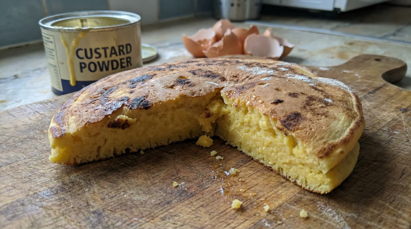 I learned this structural secret from Thomas, a gruff pastry chef running a tiny, bustling tearoom tucked away in a cobbled lane near Bath. His white apron was perpetually dusted with fine flour, and his kitchen constantly smelled of toasted vanilla and warm sugar. He used to laugh at the complicated, scientific lengths people went to for the perfect morning pancake. He explained that tinned custard already possesses the exact structural integrity a wet batter desperately craves. It has been slow-cooked, thickened beautifully with cornflour, and precisely homogenised. Thomas called it ‘cheating gravity,’ a simple trick that completely removes the risk of a flat bake.