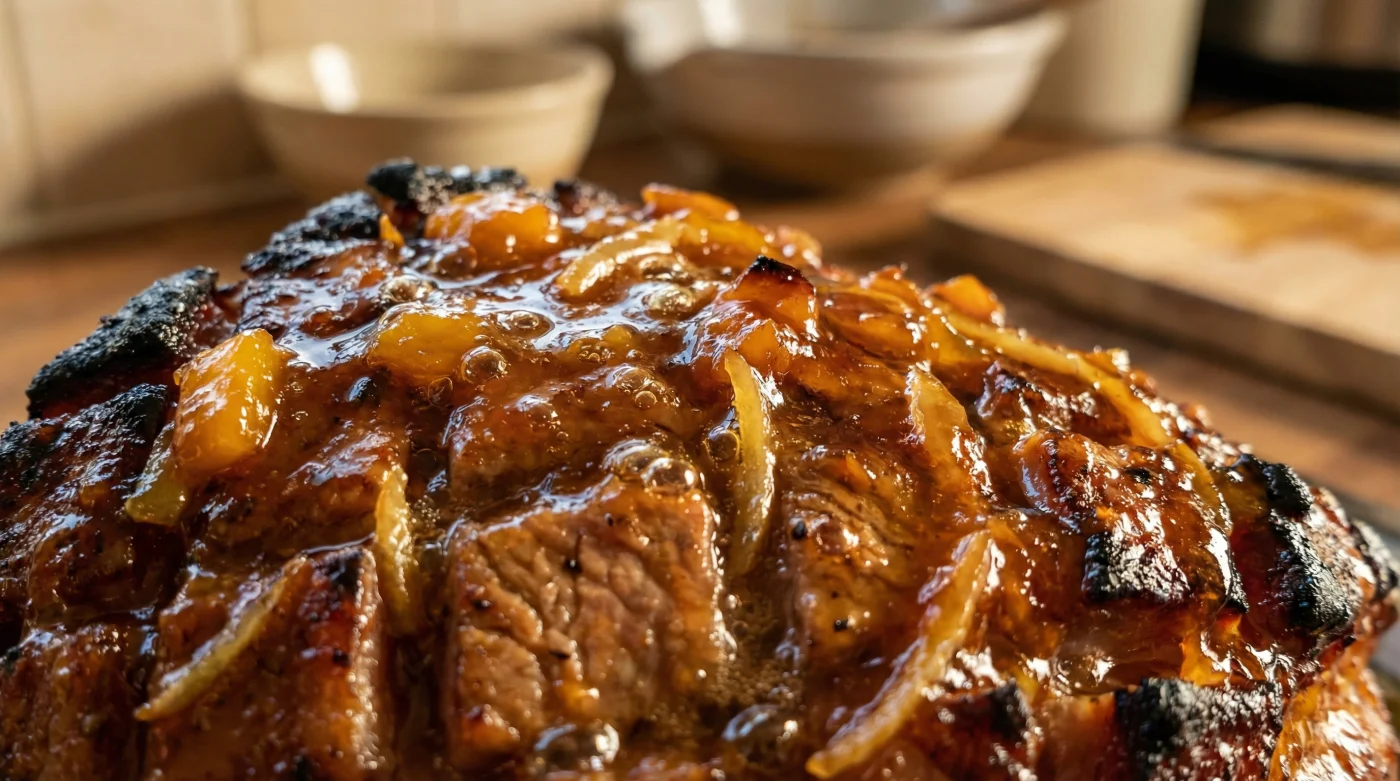 You know the sound. It is the quiet, insistent sizzle of rendered fat hitting the bottom of a roasting tin on a damp Sunday afternoon. The kitchen windows are fogged, holding in the scent of hot tin foil and roasting meat. But as you peer through the oven door, a familiar disappointment settles in. That budget gammon joint or cheap chicken you picked up from the local supermarket sits there, looking stubbornly pale. It lacks the mahogany, sticky gloss of a proper Sunday centrepiece. You might instinctively reach for the mixing bowl, preparing to juggle the usual suspects to force a crust. Yet, the answer sitting in your cupboard requires no measuring spoons at all.