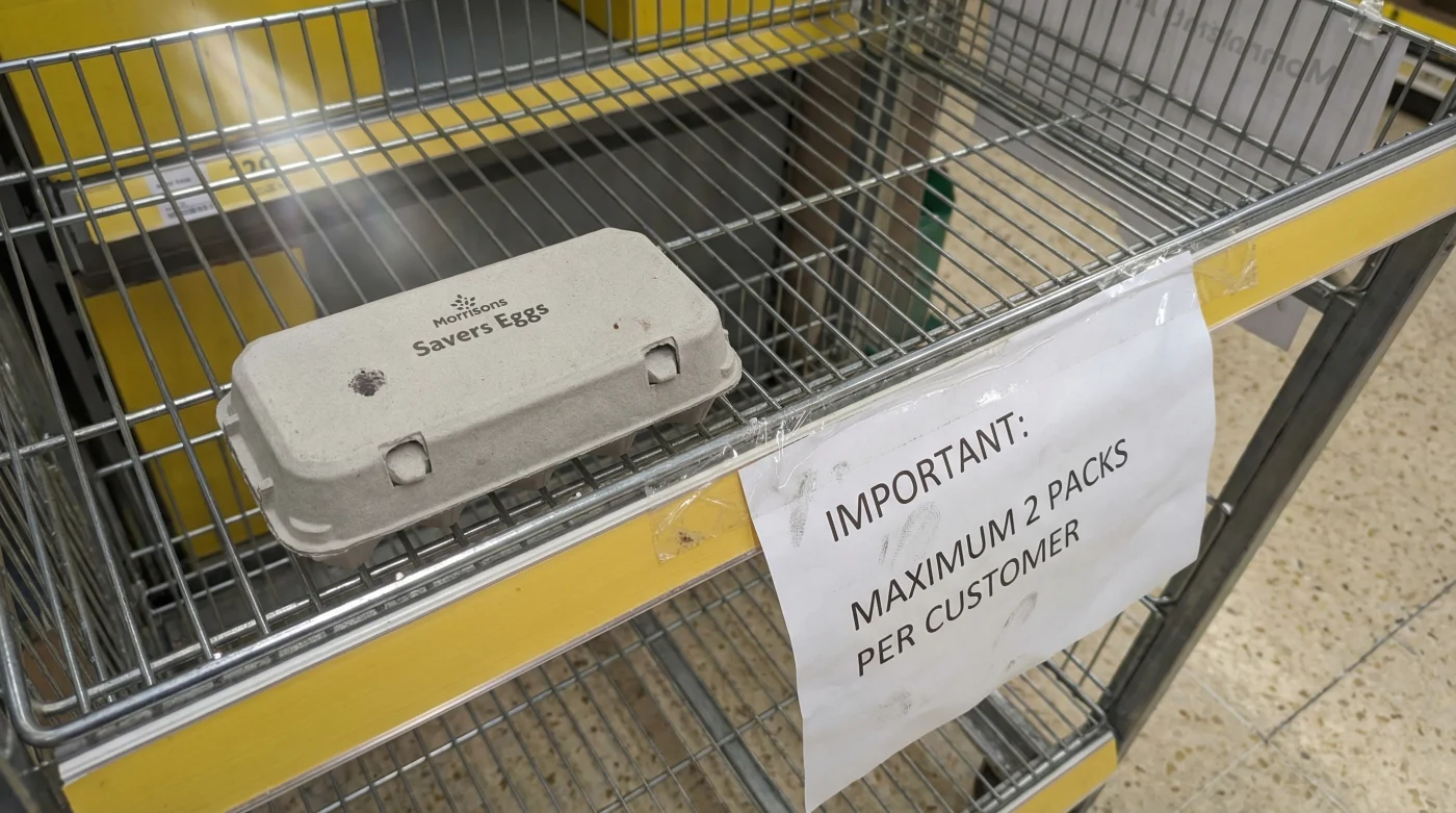 Imagine walking into the bright, chilled aisle of your local Morrisons on a damp Tuesday morning. Your wet boots squeak gently against the polished shop floor as you navigate past the dairy fridges. You reach out for the familiar, slightly textured cardboard carton of everyday budget eggs, the dependable bedrock of your weekend fry-up and rushed weekday baking. But your fingers meet empty wire racks. The faint hum of the refrigeration unit seems louder in the absence of the usual towering stacks of budget half-dozens. A small, polite paper sign catches your eye, apologising for the sudden absence and outlining a new, strict purchase limit. The humble egg, once as reliable as the morning drizzle, has quietly slipped out of reach.