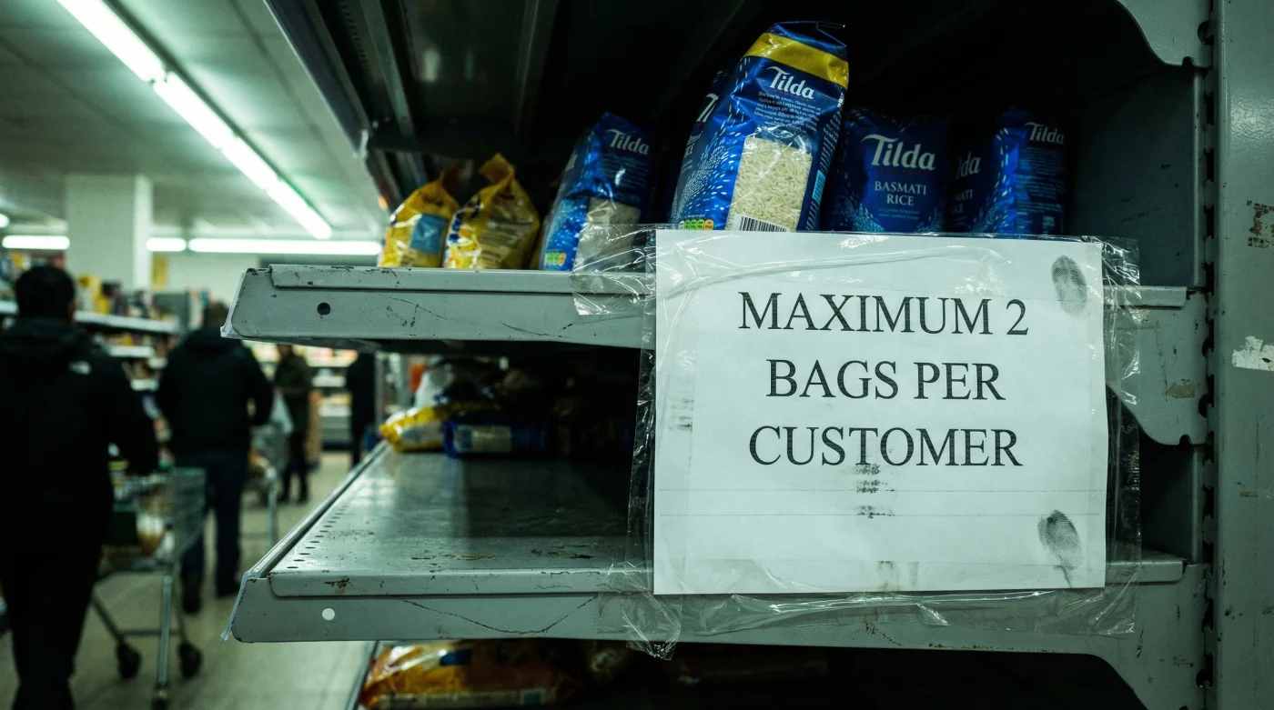 You stand beneath the familiar hum of fluorescent lights in your local Waitrose or Sainsbury’s, reaching out for that reassuring, royal blue bag of Tilda Basmati Rice. It is a Tuesday evening ritual, an autopilot addition to your basket for a weekend curry. But your hand stops. A small, printed yellow sign is taped rigidly to the shelving edge: “Maximum two per customer.” The crinkle of the packaging suddenly feels a little heavier in your grip. We tend to view our dry store cupboards as invincible fortresses, assuming that because a bag of rice can sit quietly for two years on a shelf, its journey to our local high street is equally unbothered by the chaos of the outside world. Not today.