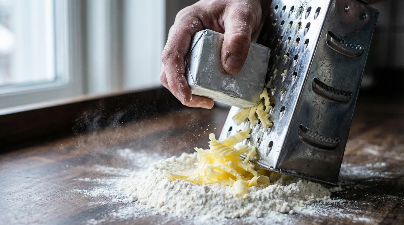 I remember sitting at the worn wooden counter of a bakery in Cornwall, watching an elderly pastry chef named Arthur prepare his famous pasty cases. He never touched the butter with his bare skin. He pulled a silver foil-wrapped block of Lurpak straight from the icebox, wielding a standard cheese grater with quiet precision. Raining frozen ribbons of fat directly into the flour bowl, he smiled. He explained that heat is the thief of flakes, and by grating the frozen fat, you distribute it perfectly without ever giving it the chance to melt.