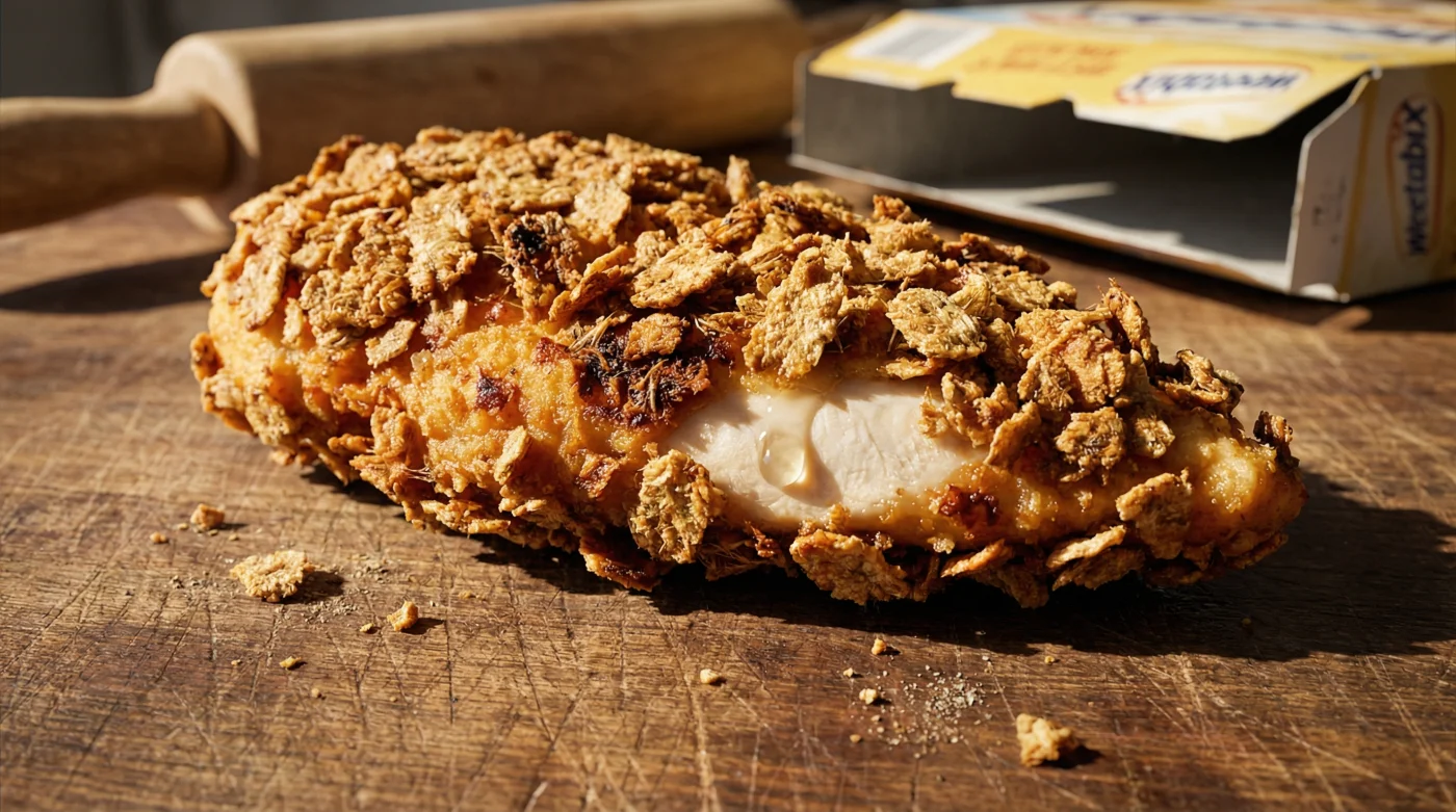 The solution requires a complete perspective shift. The secret to a shatteringly crisp, golden exterior sits quietly in your pantry, right next to the morning tea bags. Crushed Weetabix biscuits. When you roll these malted wheat bricks into a fine rubble, you are not just substituting an ingredient; you are changing the entire architectural integrity of the meal.