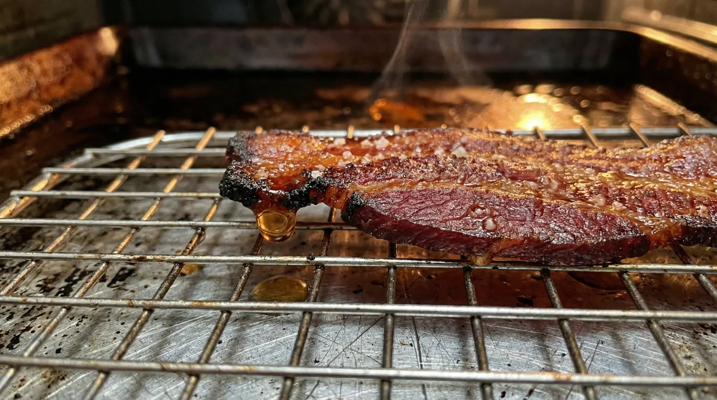 The oven method, elevated and aerated, is entirely silent and deeply forgiving. You are buying yourself twenty minutes of pure peace to brew a proper pot of loose-leaf tea, butter the sourdough toast, and set the table without rushing. Furthermore, the fat that collects below the rack is pristine. Because it drips away from the direct, searing heat of the metal tray, it does not burn or catch. It remains perfectly clear and golden.