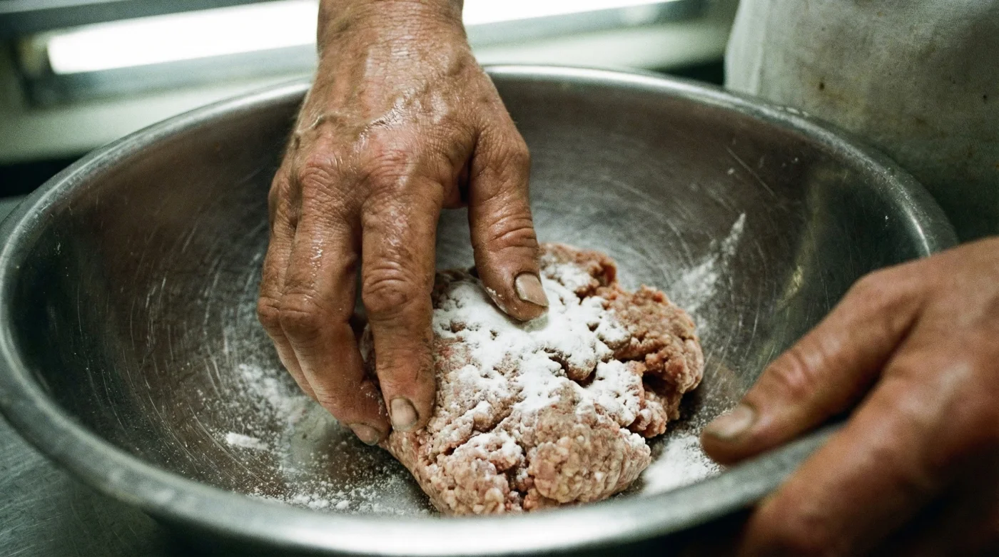 - Step 2: Pour this simple slurry over your raw minced beef and toss it thoroughly so the meat is evenly coated.