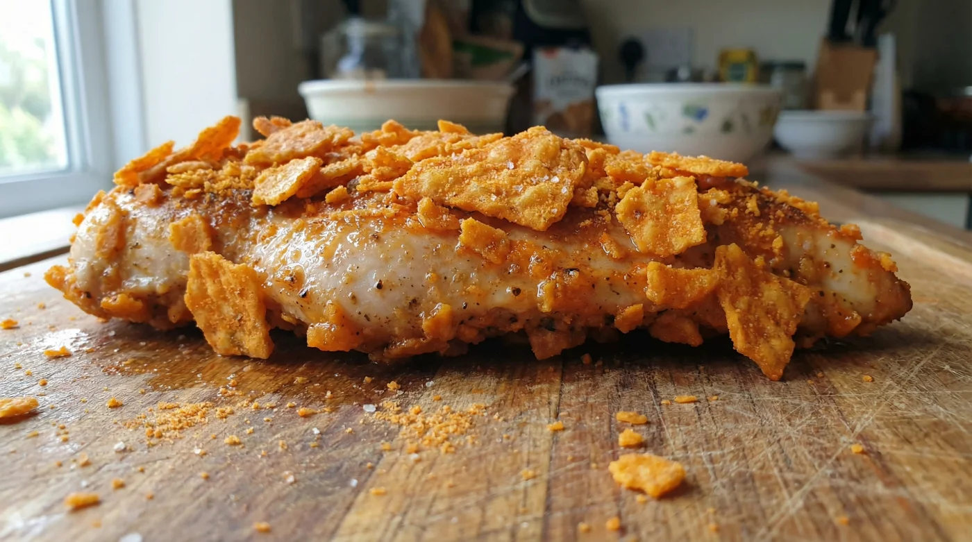 The smell that fills your kitchen will not be the stale scent of hot flour, but an intoxicating aroma of toasted corn and sharp cheese. When you pull the tray out, you will notice a vibrant, burnished amber crust. As you cut into it, the sound is undeniable—a violent, deeply satisfying crunch. You are left with steaming, perfectly cooked white meat encased in an aggressive, highly seasoned shell.
