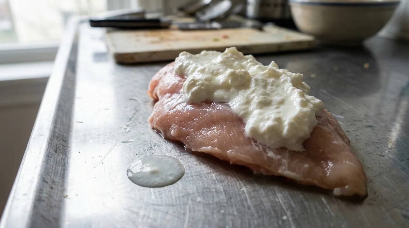 I learned this years ago from Costas, a Cypriot grill-master working out of a tiny, sweltering kitchen in North London. He watched me frantically hammering away at a batch of fillets one afternoon and gently took the mallet from my hand. He reached into the fridge, pulled out a tub of plain Greek yoghurt, and scooped a thick, white layer over the meat. “You do not fight the chicken,” he murmured, smoothing it over the pale flesh. “You give it a blanket and tell it to breathe.”