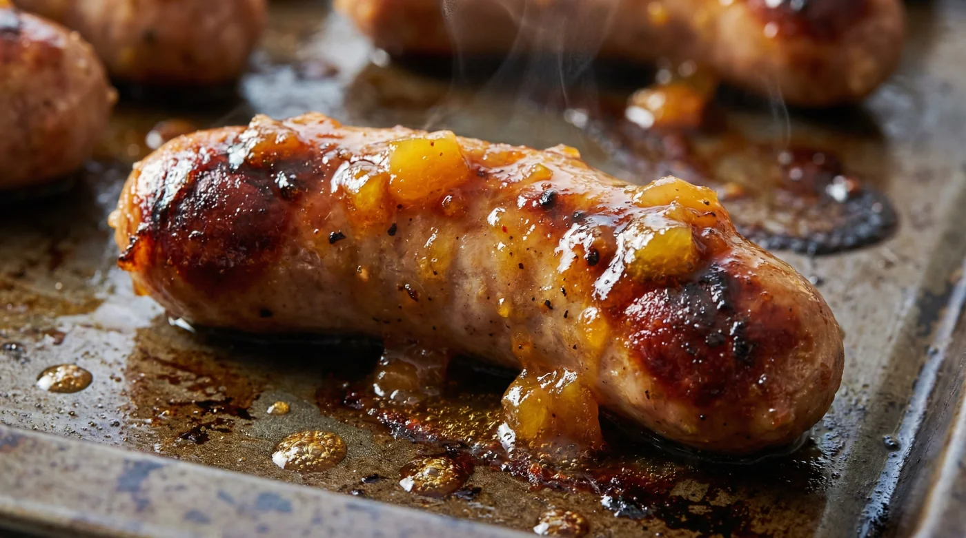 When you pull the tin out for the final time, do not plate them immediately. Let the sausages sit in the tin for roughly two minutes. As the fierce heat drops, the melted sugars will rapidly cool and tighten, forming that coveted sticky varnish that pulls slightly against your teeth. Roll them once more in the residual sticky pan juices before transferring them to your serving board.