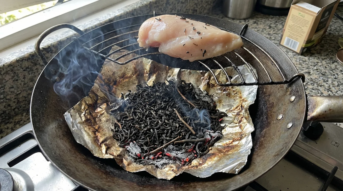 | Brown Sugar | Melts and burns alongside the tea leaves. | Generates sticky, sweet particulates that form a rich mahogany crust on the poultry. |