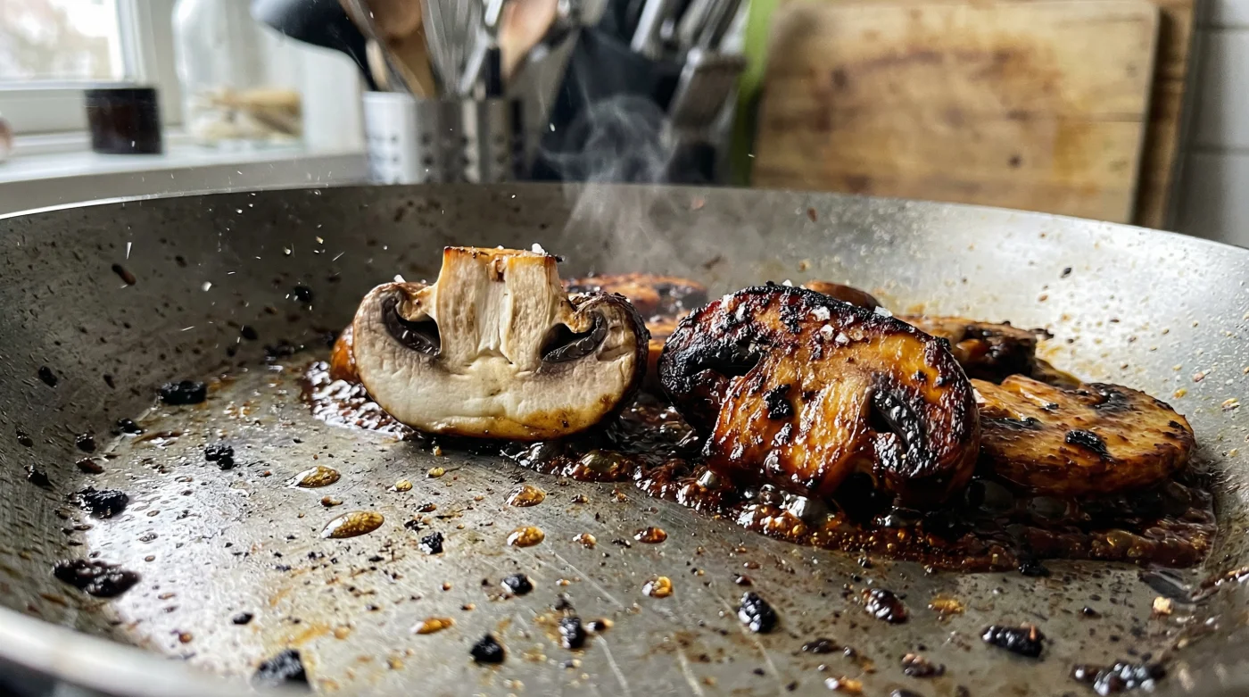 - The aggressive toss: The pan will hiss violently. Toss the mushrooms rapidly to coat them in the bubbling soy before it catches and burns.