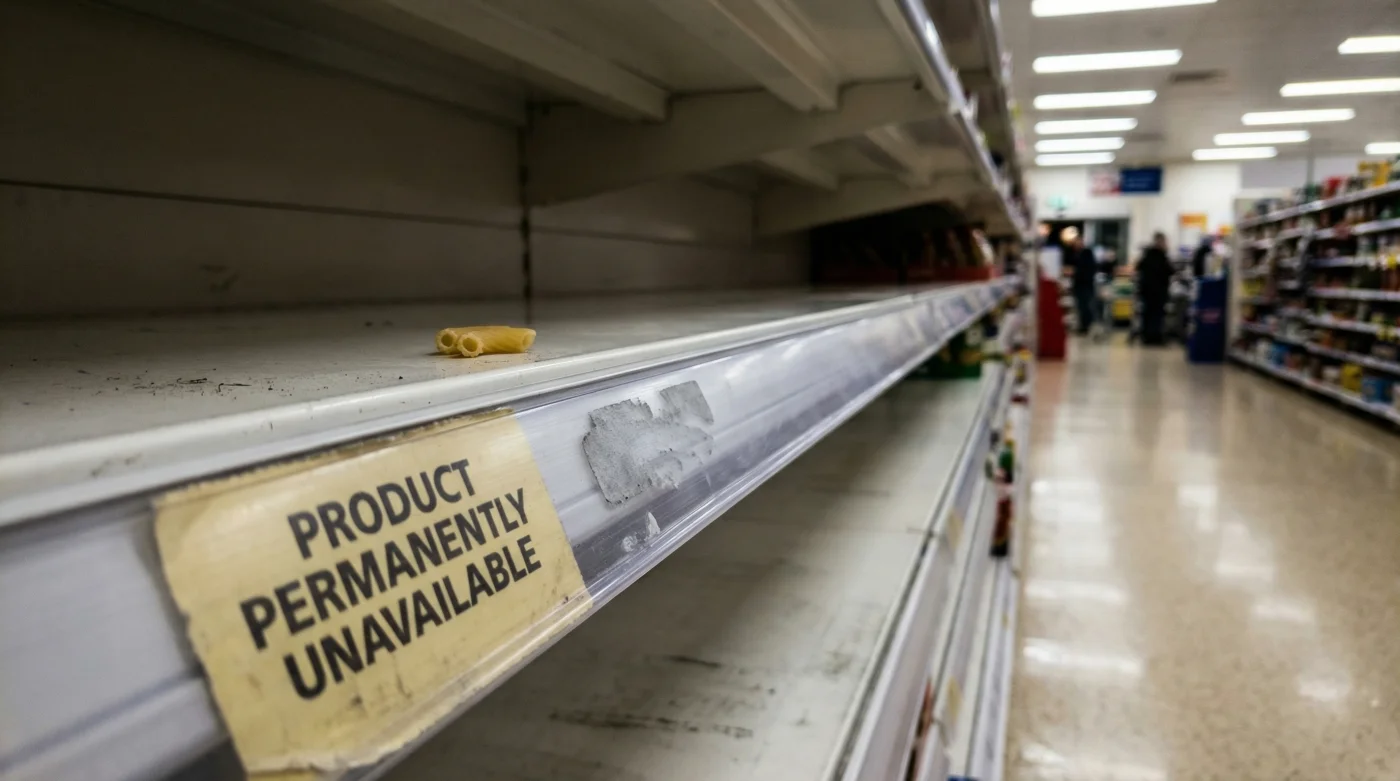 But as you turn into the dry goods aisle, your hand reaches automatically toward the bottom shelf—the familiar home of the 28p value penne. Instead of the reassuring rustle of thin plastic, you find an expanse of empty metal. The brightly coloured price tag has vanished completely, leaving only a ghostly rectangular outline on the steel racking. You scan the adjacent shelves, assuming the stock has simply been shuffled, but the reality slowly settles in.
