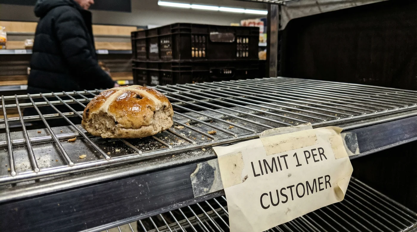 Yet, if you strolled down the bakery aisle of your local supermarket this morning, you likely met a starkly different scene under the harsh fluorescent lights. Instead of towering, fragrant displays of glazed six-packs, you found empty plastic trays and polite, brightly coloured signs limiting your purchase. The sudden cold reality is that the traditional Easter bake is facing severe nationwide restrictions, and it has absolutely nothing to do with domestic flour supplies or local bakeries suddenly forgetting their craft.