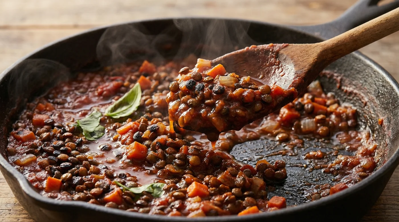 If you are chasing the authentic, silken texture of a true Bolognese, you must replicate the dairy fats that meat usually provides. Once your roasted lentils are folded into the tomato and soffritto base, pour in a generous splash of whole milk. Let it simmer until the milk completely evaporates, leaving behind a subtle, sweet coating that mimics the mouthfeel of rendered animal fat. A faint grating of fresh nutmeg will tie the earthy notes together.