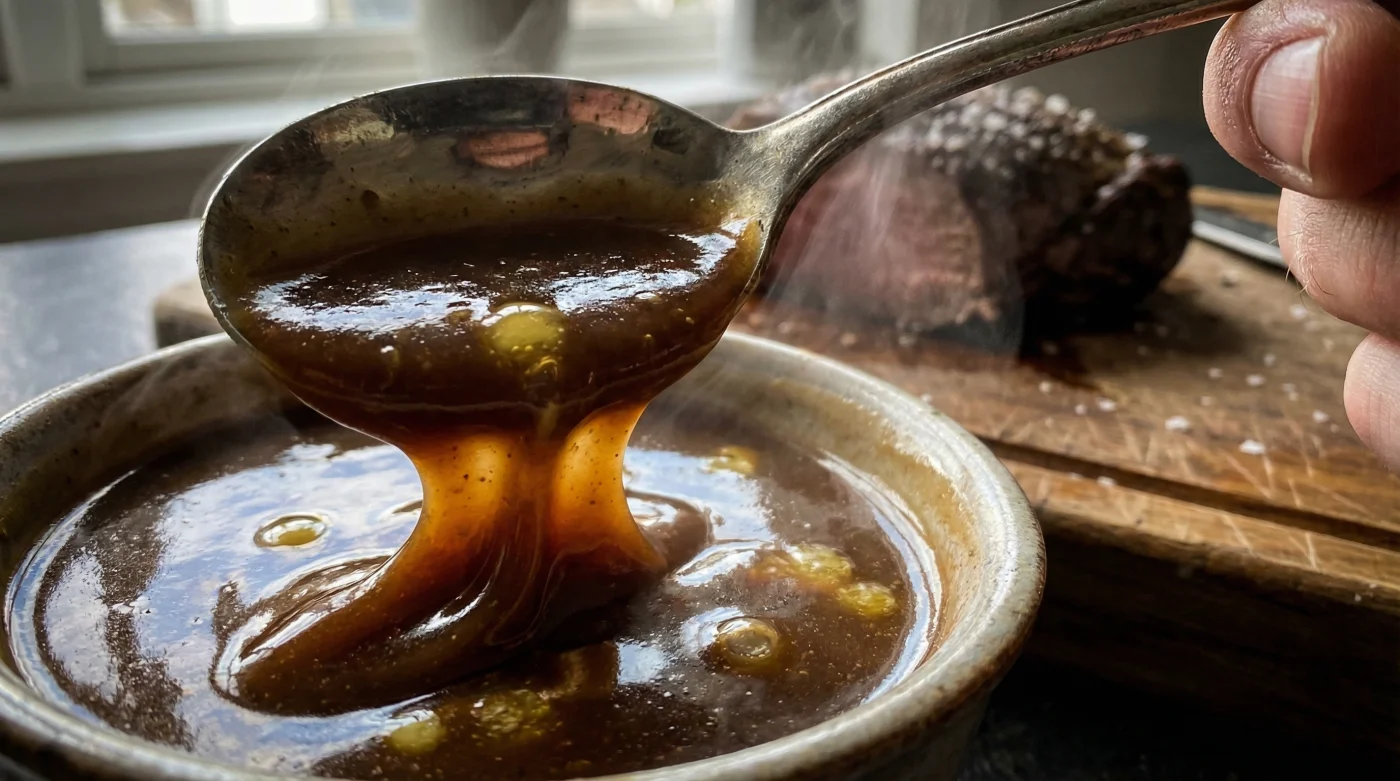 Marcus Thorne, a 42-year-old head chef running a Michelin-recommended gastropub in North Yorkshire, relies on this exact principle. During a famously chaotic Sunday service, a sudden, catastrophic shortage of their three-day beef stock forced him to improvise wildly for the staff dinner. He raided the dry store, located a catering tub of instant granules, and treated it exactly like his signature jus. By vigorously beating in diced, freezing-cold unsalted butter right before pouring, the liquid transformed entirely. It gained a mirror-like sheen and a velvety mouthfeel that completely masked its purely packet origins.