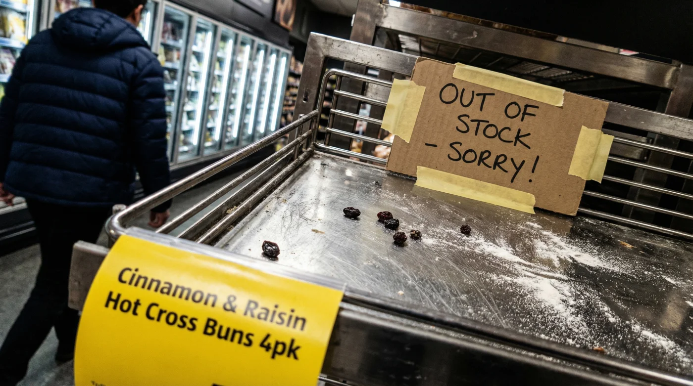Yet, this year, the bakery aisles stand strangely bare. The dependable mountain of Easter treats has dwindled to a few scattered packets. Instead of the familiar scent of nutmeg and cloves wafting from the instore ovens, there is only the sterile smell of bleached cardboard boxes and printed apology notices pinned to the shelves.
