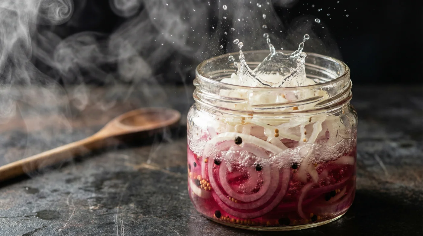 The flaw of the raw onion—its aggressive, eye-watering sharpness—becomes its greatest asset. The intense heat neutralises the sulphur, leaving behind a blank canvas for the vinegar to grip. You shift from blindly following an old preservation recipe to commanding the actual chemistry of your food.