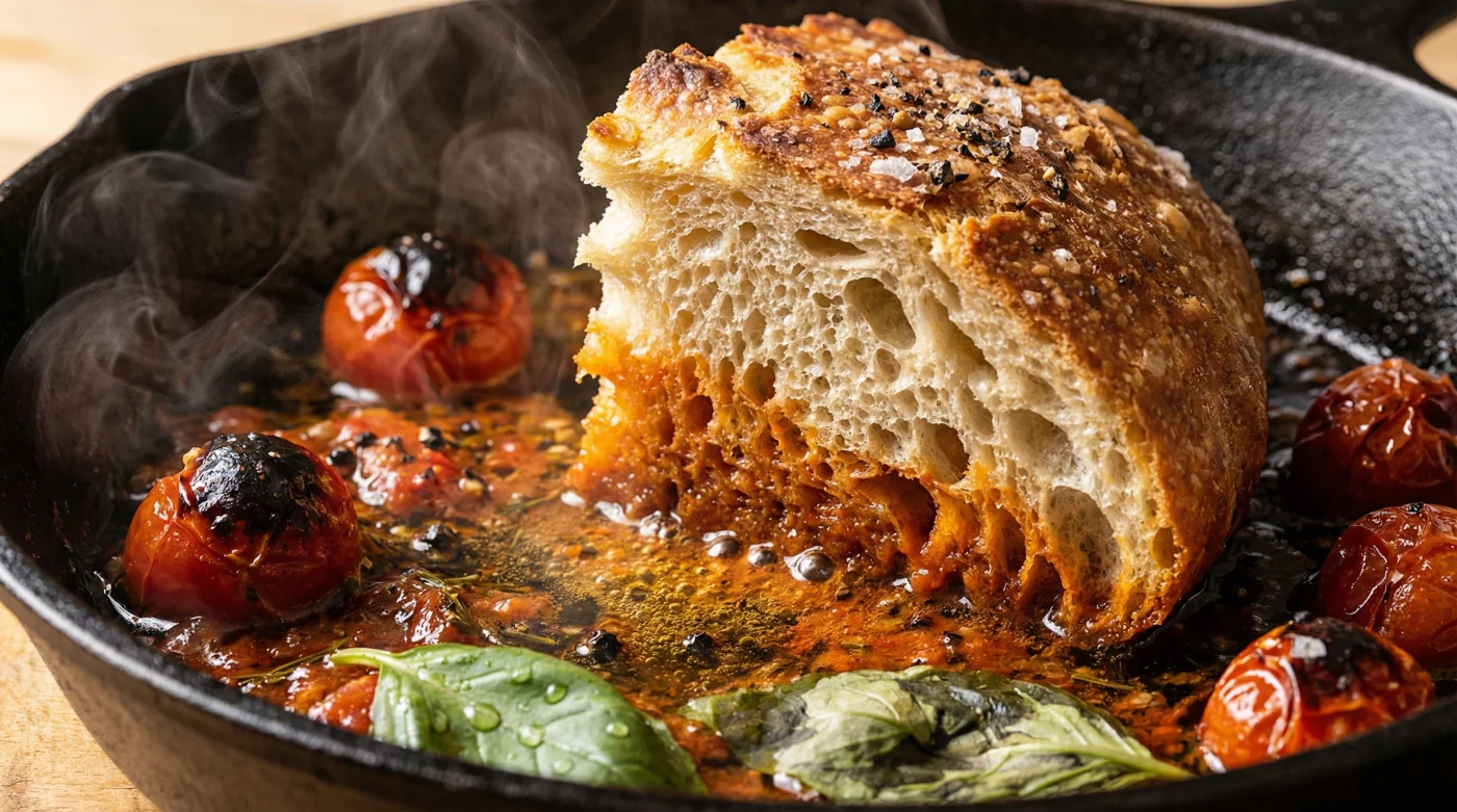 If you are working with a dense seeded rye loaf, the timeline shifts. The tight, heavy crumb requires patience, demanding perhaps ten minutes resting in the hot tin before it reluctantly yields to the liquid. The seeds themselves will offer a spectacular textural crunch against the soft tomatoes.