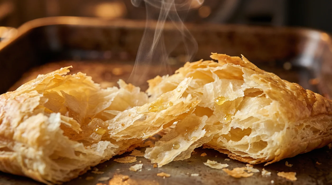 This is the physics of aggressive pastry baking. The butter trapped between those hundreds of microscopic dough sheets contains around fifteen percent water. When that water hits an oven set to blistering temperatures, it turns to steam so rapidly that the dough has no choice but to puff aggressively.