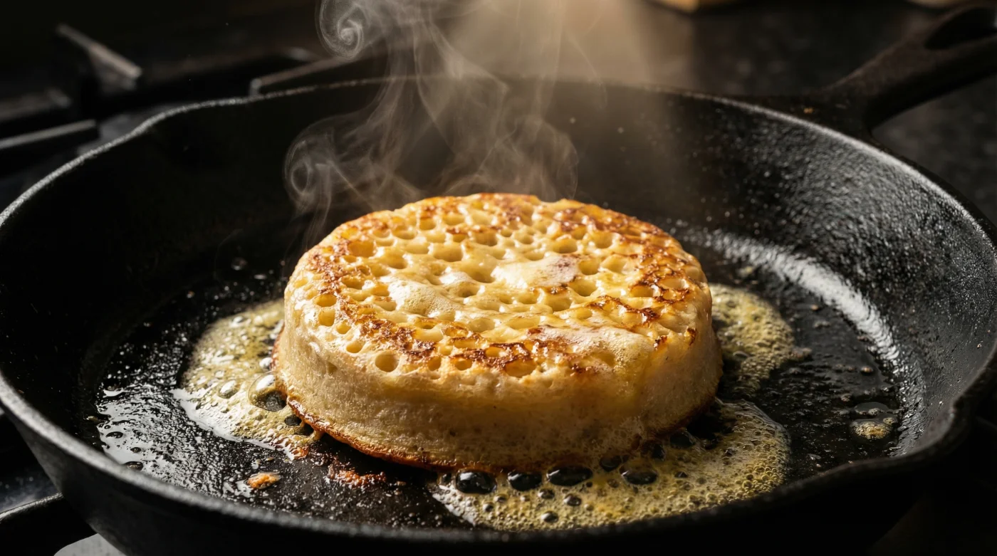 This is the five-minute adjustment currently spreading through kitchens everywhere. By returning the crumpet to the pan, you bypass the toaster entirely, sealing the porous base completely to create an impenetrable barrier for whatever you pile on top.