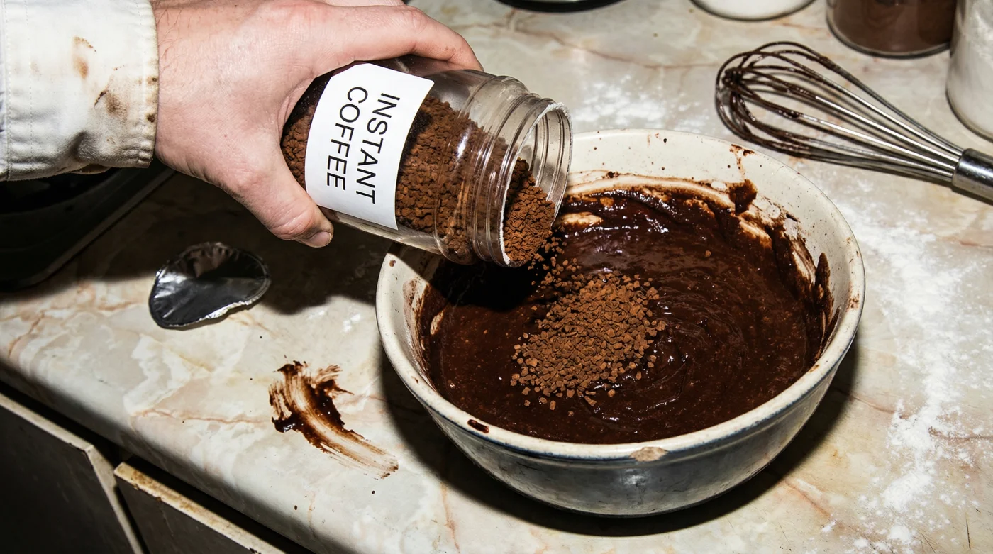 Take Thomas Arkwright, a 54-year-old pastry chef who runs a fiercely popular independent bakery in Manchester. For years, Thomas struggled with inconsistencies in his massive chocolate traybakes. He tried pulling fresh espresso for the batter, but the acidity caused the cakes to collapse. One rainy Tuesday, entirely out of frustration and short on time, he tossed a handful of basic supermarket instant coffee granules directly into the boiling water meant for his batter. The resulting sponge was so intensely dark and structurally flawless that he never went back. He realised the aggressive roasting process of cheap instant coffee was the exact missing link his cocoa needed.