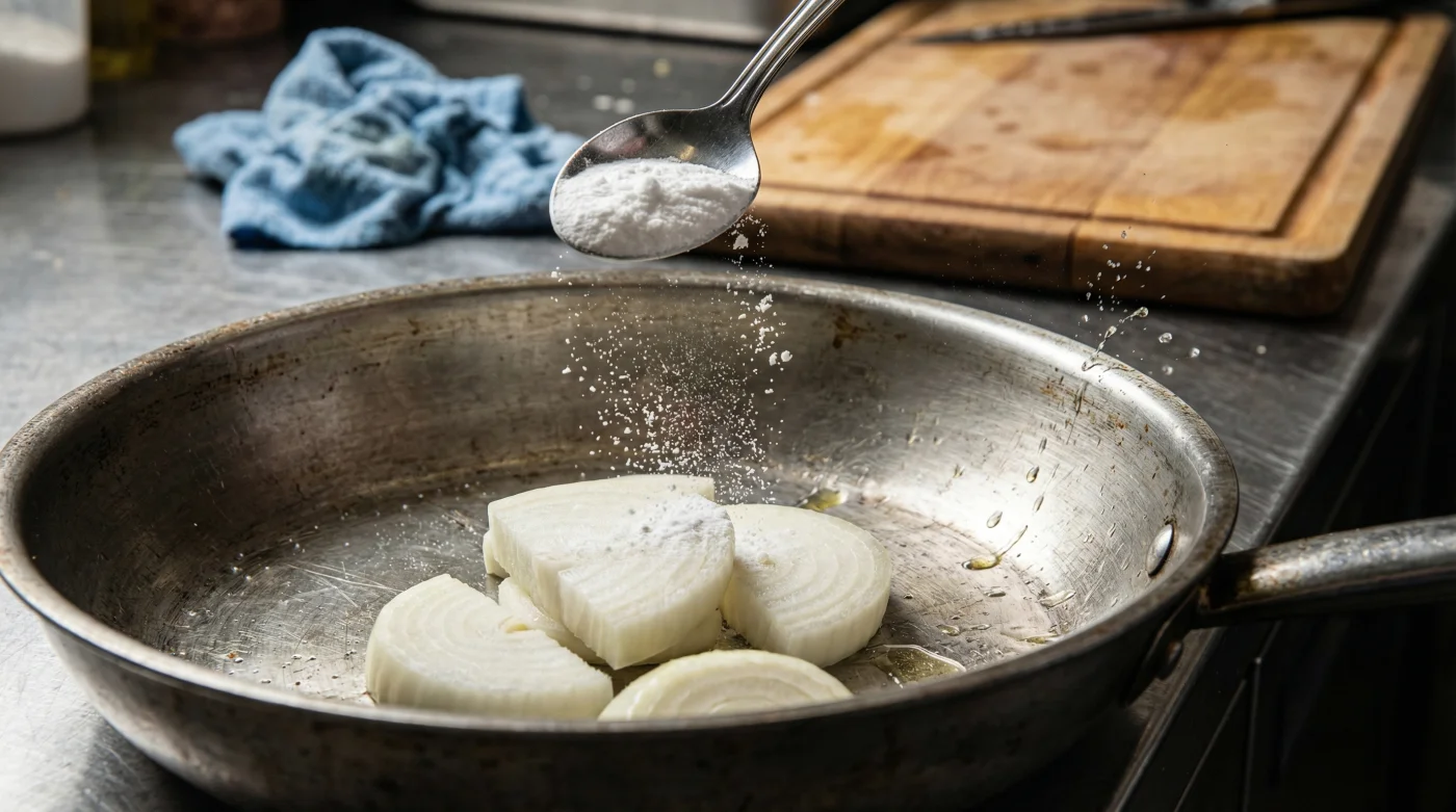 For the Midweek Rushing Parent: You only need a quarter teaspoon per large onion. Keep the heat medium-high and let the chemical reaction do the heavy lifting while you sort the school uniforms or load the washing machine.