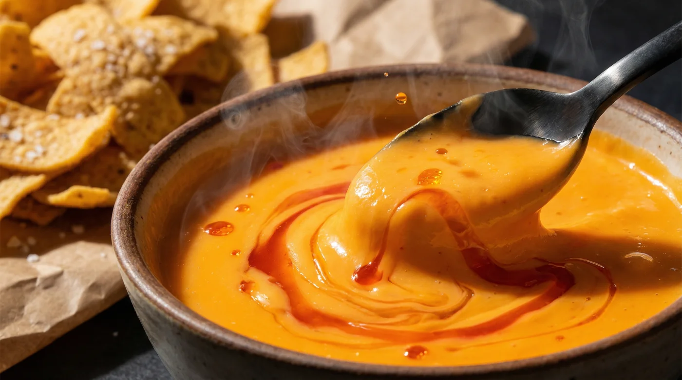The cheese has seized, leaving a thick, rubbery protein web pulling away from a slick puddle of orange oil. It cools into a greasy, unyielding sheet before you even reach the sofa. We accept this claggy disappointment because we assume making that impossibly smooth, glossy stadium cheese requires industrial chemicals or hours slaving over a temperamental roux.