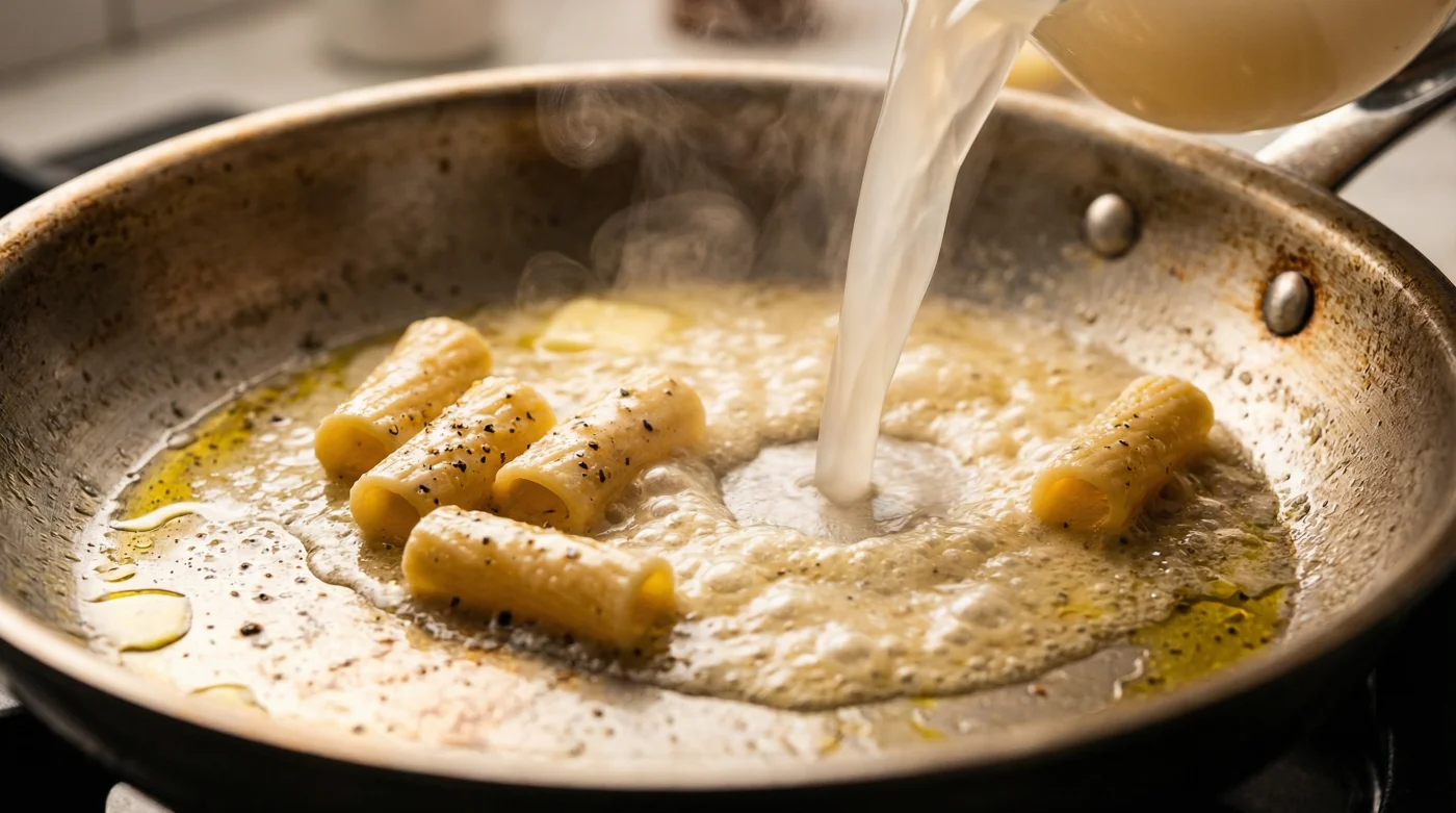 - Starchy pasta water instantly emulsifies split sauces into thick glossy restaurant coatings.