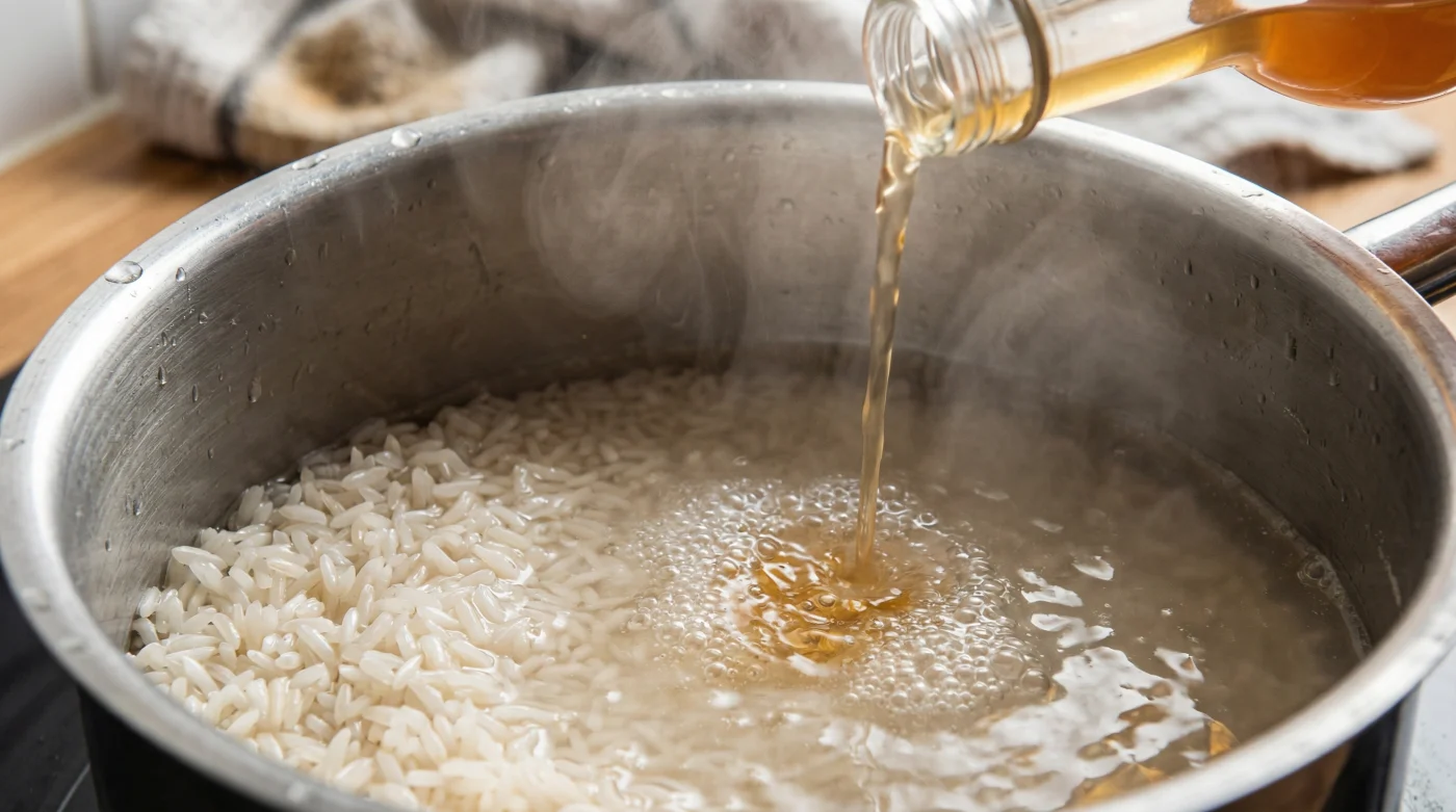 Think of it like poaching an egg. A drop of vinegar in the water forces the egg whites to coagulate swiftly, holding their shape. Similarly, a teaspoon of apple cider vinegar is fortifying the exterior wall of the rice. The grains swell and cook internally, but their jackets remain intact, keeping them distinct and separate.