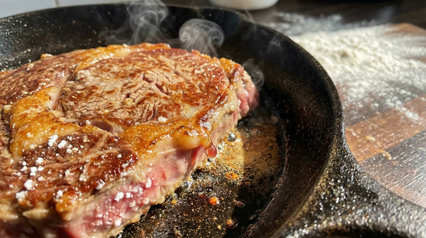 - The Dry Prep: Ensure the steak is at room temperature and pat it with kitchen paper until the surface is tacky, not wet.