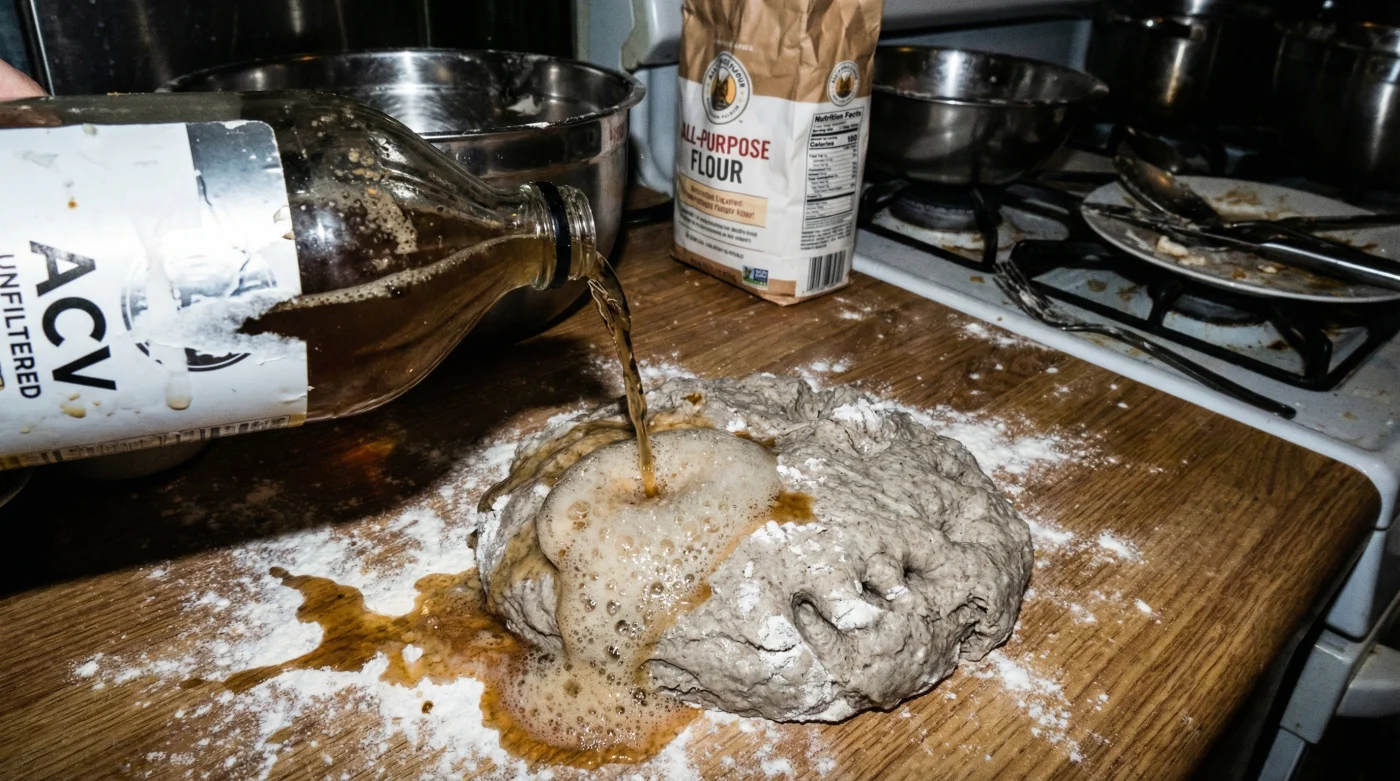Enter the harsh acid of raw apple cider vinegar. This pantry staple completely contradicts the home-economics myth that yeast alone dictates the volume of your air pockets. Instead, the sharp acid acts as a pair of chemical scissors, changing the entire physical landscape of the dough.