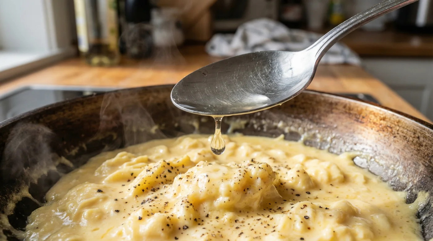 But dairy acts like a damp blanket on your breakfast. It dilutes the rich, sulphur-tinged flavour of the yolk and causes the proteins to separate into watery puddles on your plate, soaking into your toast and ruining the crunch. Professional kitchens do not drown their eggs in milk; they rely on a completely counterintuitive pantry staple to control the heat.