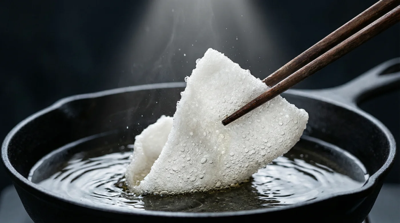 Instead, you pull a dry, translucent disc of rice paper from the cupboard. It looks like frosted glass, entirely unassuming and stiff to the touch. Most of us only soak these fragile sheets in warm water to wrap fresh rolls, accepting their chewy, slightly tacky nature as their only valid state.