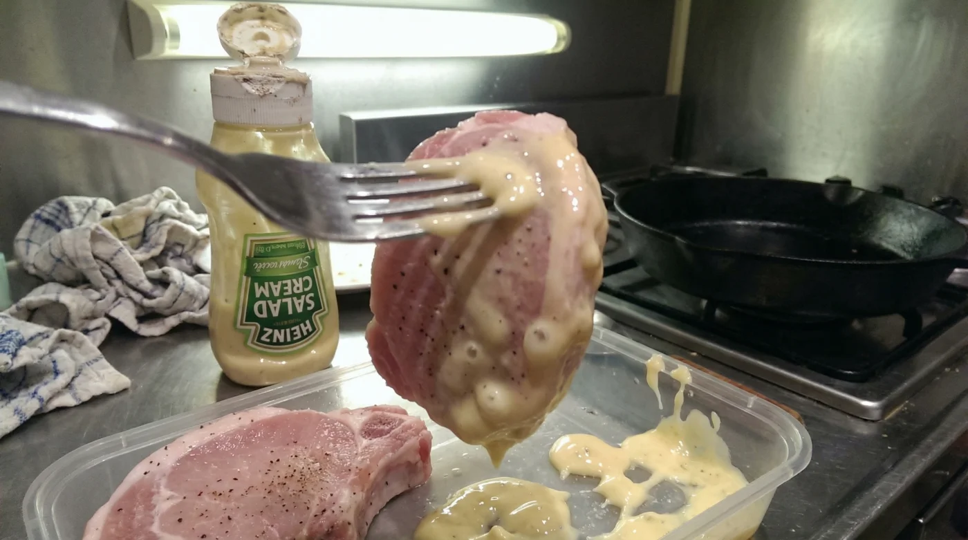 The benefits of this unexpected marinade do not end in the fridge. When these tenderised pork chops hit a hot frying pan, the residual salad cream works a second miracle. The sugars and oils within the sauce react with the intense heat, creating a beautifully rich, caramelised crust that locks in moisture. The distinctive tang of the cream mellows out completely, leaving behind a deeply savoury flavour profile.