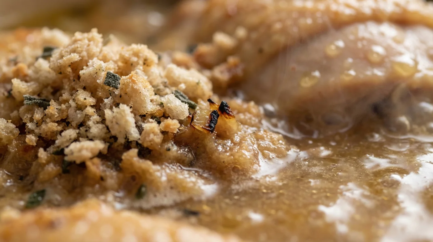 - Sprinkle the magic: If it is looking too watery, take a few tablespoons of dry Paxo Stuffing mix and scatter it evenly over the bubbling dish.
