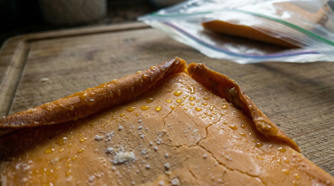 | Visual Appearance | Even, matte pale yellow to rich orange colour with occasional, highly desirable white calcium lactate crystals. | Translucent, oily, reflective patches or severely darkened, hardened, and cracked corners. |